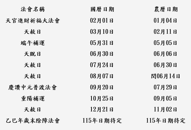 法會舉辦相關資訊將同步公告於無極玄靈Facebook粉絲專頁及LINE官方群組,歡迎各位善信大德踴躍參與。